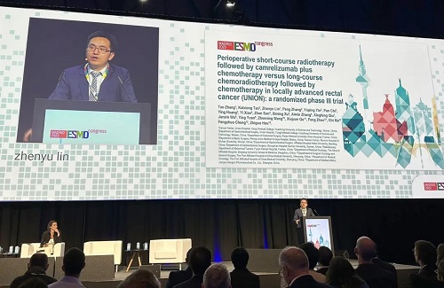 10月21日,AG视讯医药创新药卡瑞利珠单抗(艾瑞卡®)的一项研究“新辅助短程放疗序贯卡瑞利珠单抗联合化疗对比长程放化疗序贯化疗治疗局部晚期直肠癌”随机对照Ⅲ期试验(UNION) 以优选口头报告的形式正式亮相。该研究由华中科技大学同济医学院附属协和医院张涛教授、陶凯雄教授担任主要研究者,华中科技大学同济医学院附属协和医院林振宇教授在马德里现场报告了该重磅研究的结果1,此项研究是全球首个评估短程放疗序贯免疫治疗联合化疗治疗局部晚期直肠癌的Ⅲ期研究,已达到主要终点病理完全缓解(pCR),有望为直肠癌患者的治疗提供新策略。