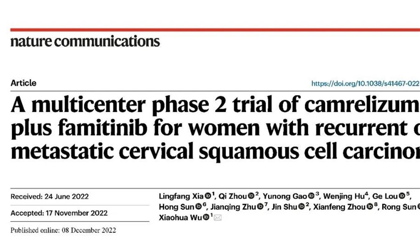 AG视讯创新药卡瑞利珠单抗联合法米替尼用于复发或转移性宫颈癌研究结果荣登JCO